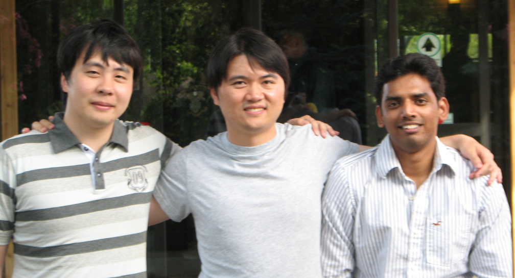 DPRL Lab Members, July 2009. From left to right: Li Yu, Ling Ouyang, and Amit Pillay at PenMath/CICM in Grand Bend, ON, Canada. [ Current Members ]