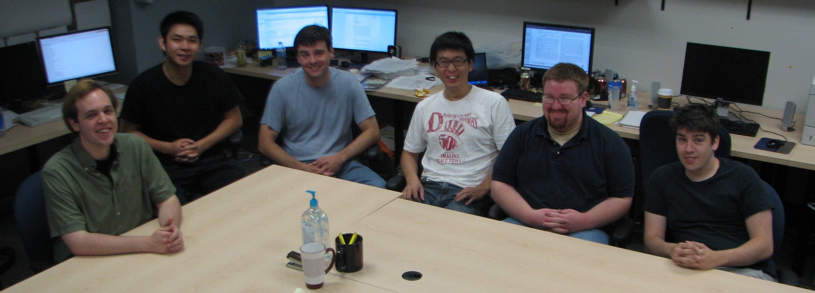 DPRL Lab Members, July 2011. From left to right: Thomas Schellenberg, Lei Hu, Richard Zanibbi, Bo Ding, Kevin Hart, and Richard Pospesel (not shown: Benjamin Holm and Lane Lawley). [ Current Members ]